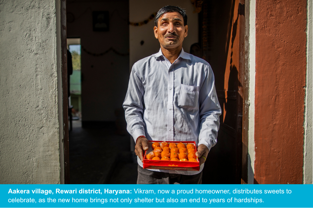 The generous support of Max Estates has enabled Habitat for Humanity India to build safe and dignified homes for 50 families in Aakera and Budhla villages of Rewari district in Haryana. These marginalised families were earlier living in poor housing conditions. The project is being implemented in two phases. In the first phase, 25 homes have been built in Aakera. The families have moved into their new homes and are building a better future for themselves. The second phase is currently underway in Bhudla village, where Habitat India is building homes for 25 families.